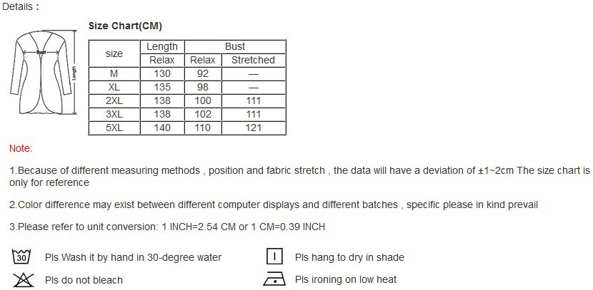 Size: M/XL/XXL/3XL/5XL