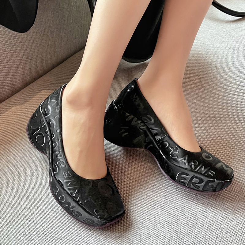 Women’s All-match Shallow Mouth Sponge Cake Square Toe Platform Shoes