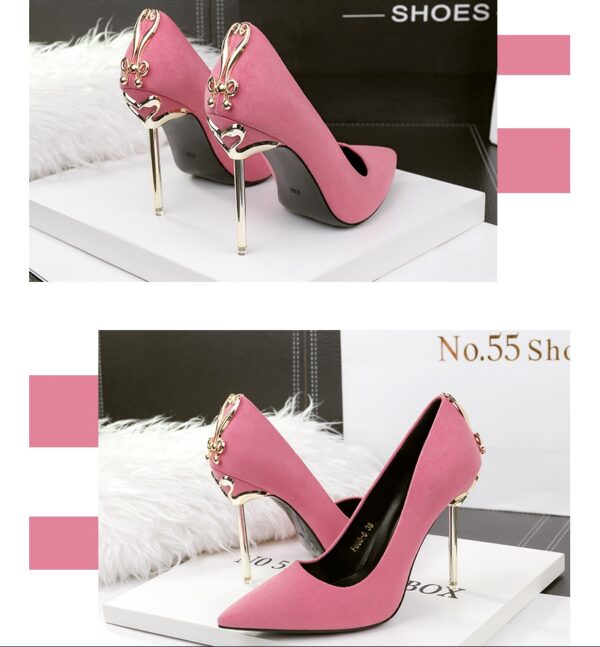 Women’s fashion pointed high heels nightclub sexy metal with women’s shoes stiletto metal bow banquet